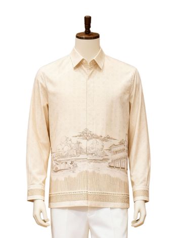 Rendered in a warm beige tone, the color brings a sense of calm strength and understated elegance. Beige symbolizes stability, maturity, and timeless appeal, allowing the heritage pattern to stand out without overpowering the overall look. This neutral shade offers exceptional versatility, making the shirt ideal for formal-casual settings, cultural occasions, professional environments, or elevated daily wear.