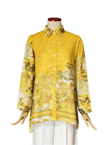 Designed in sizes S, M, L, and XL, the shirt provides a flattering fit for various body types. Its versatile cut allows effortless pairing with tailored trousers, skirts, culottes, or layered with outerwear for a more formal look. Whether styled traditionally or modernly, the shirt adapts seamlessly to different occasions.